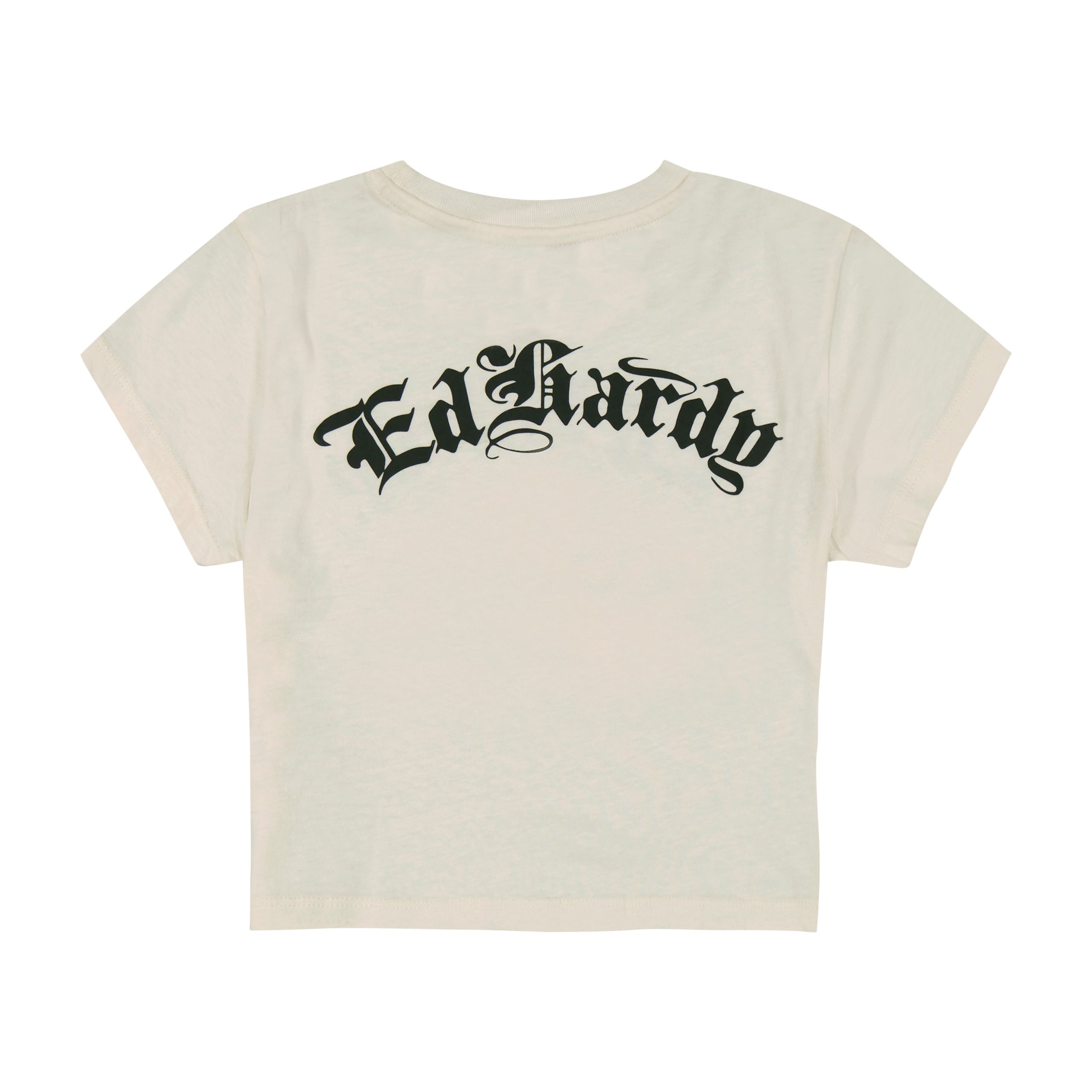 Our classic baby tee silhouette featuring a Devil Panther graphic and Ed Hardy logos. Constructed from a soft cotton blend.