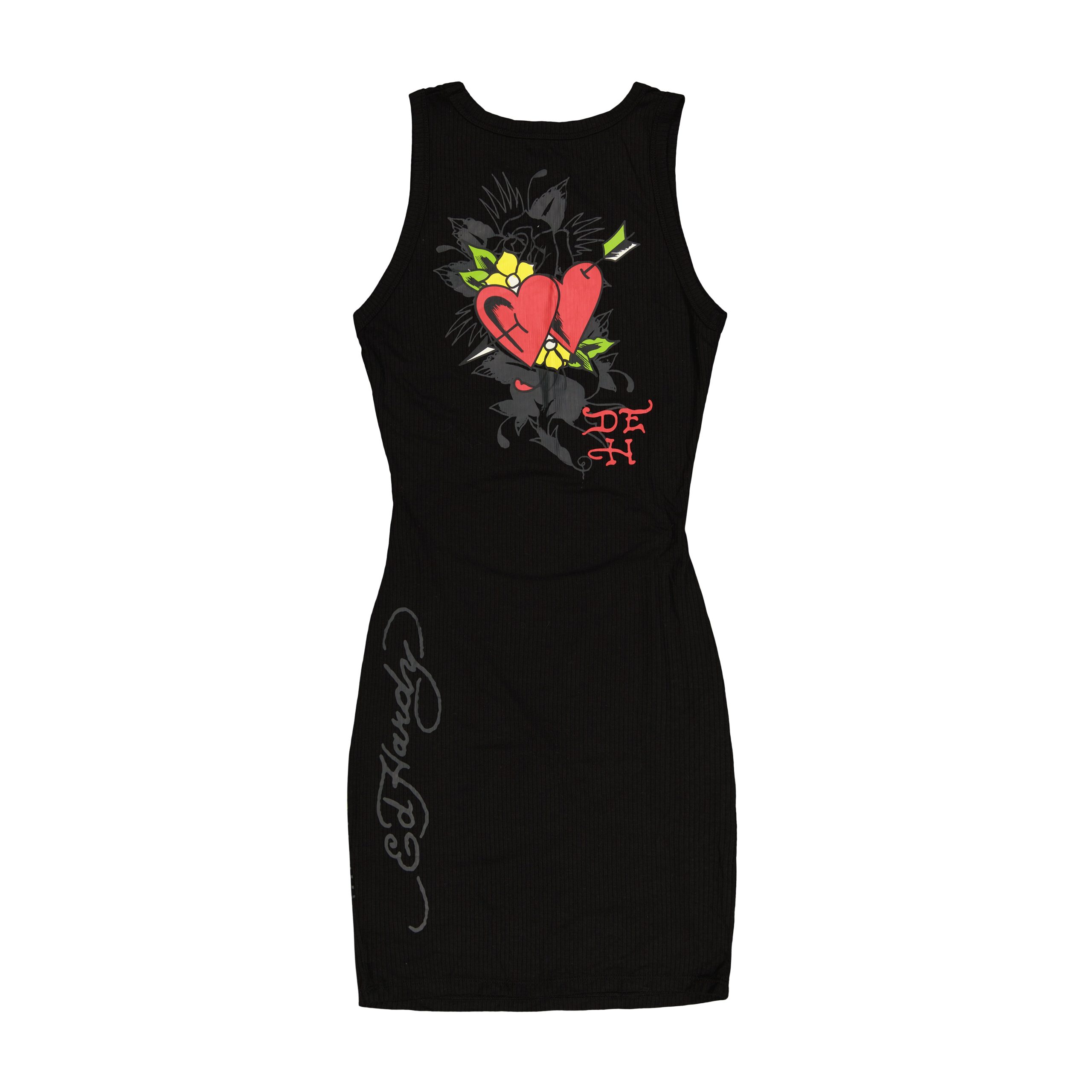 This cutout tank dress is cut from a rib cotton-poly blend in black and features archival Ed Hardy graphics and logos.