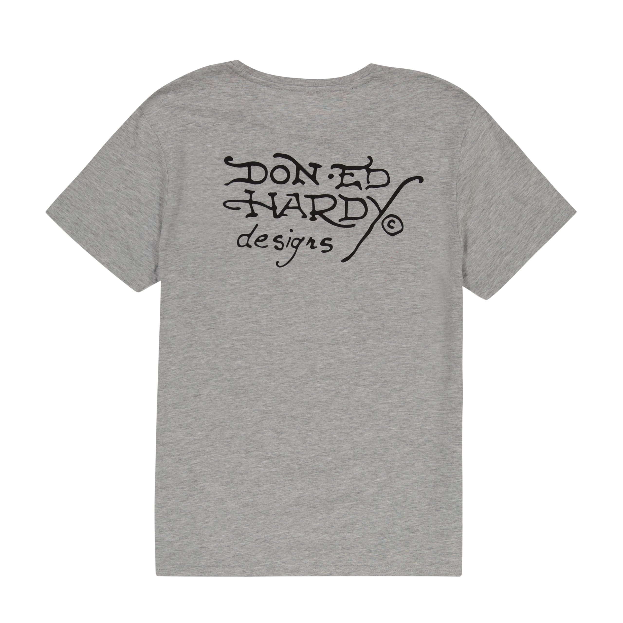 This heather gray tee is constructed from quality cotton to ensure comfort. Complete with rhinestones and an iconic Ed Hardy battle skull graphic.