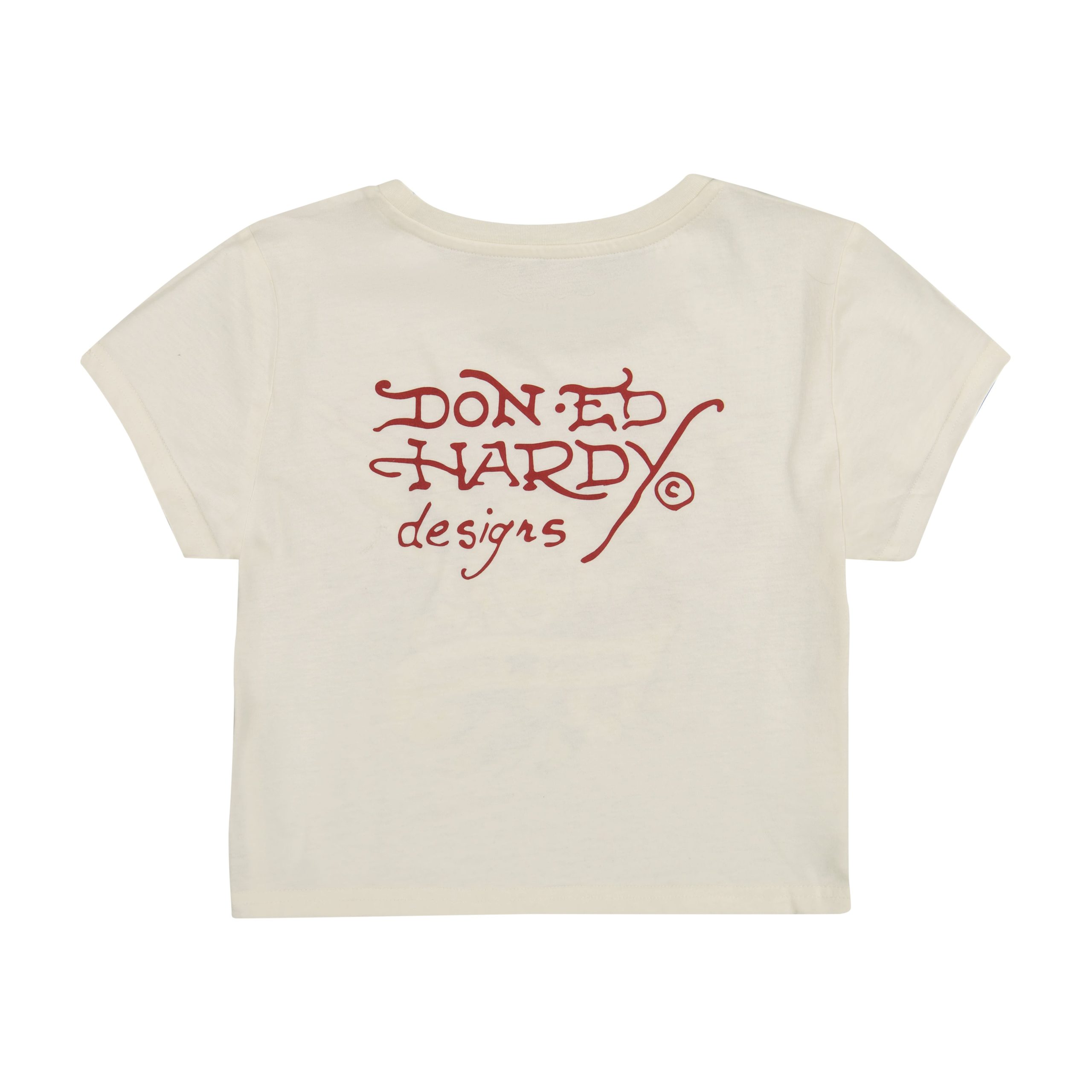 Our classic baby tee silhouette featuring an archival cherub graphic and red Ed Hardy logos. Constructed from a soft cotton blend.